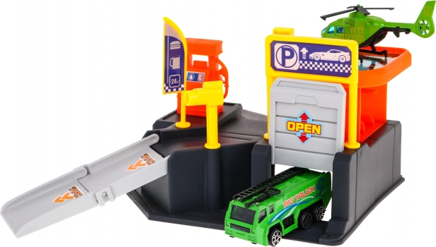 Las rampas, la entrada, las plazas de aparcamiento y la zona de aterrizaje para helicóptero brindan diversión de tráfico realista y fomentan el juego creativo.