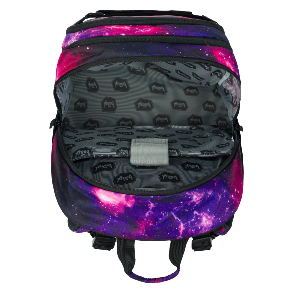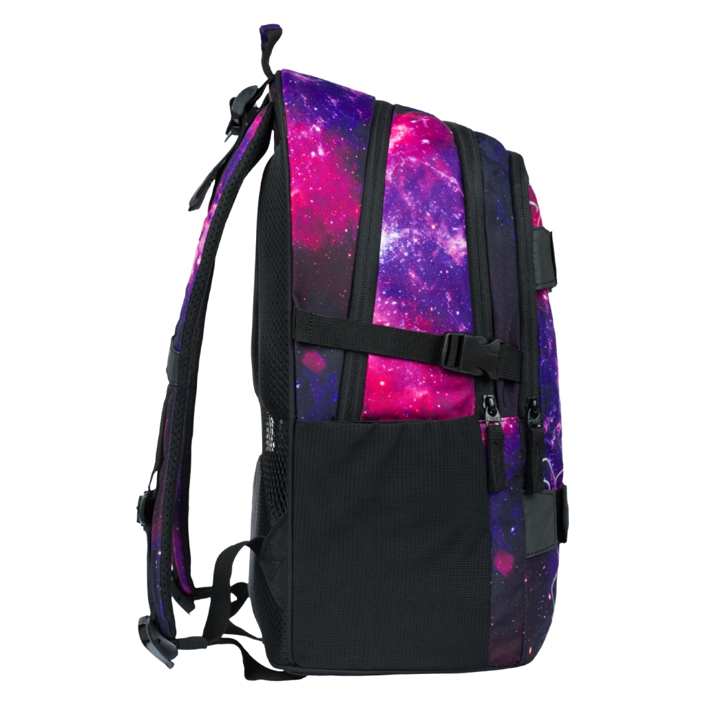 La mochila escolar BAAGL Skate Galaxy, ligera y resistente, con una capacidad de 25 l, ofrece espalda ergonómica, 3 compartimentos independientes con organizador y un bolsillo para portátil de 15". Las correas frontales para skateboard, los bolsillos laterales elásticos para botella, los elementos reflectantes y un peso de solo 850 g la convierten en una opción ideal para la escuela y el tiempo libre.