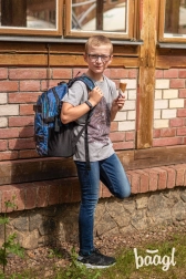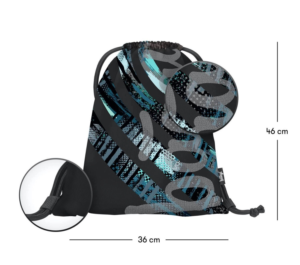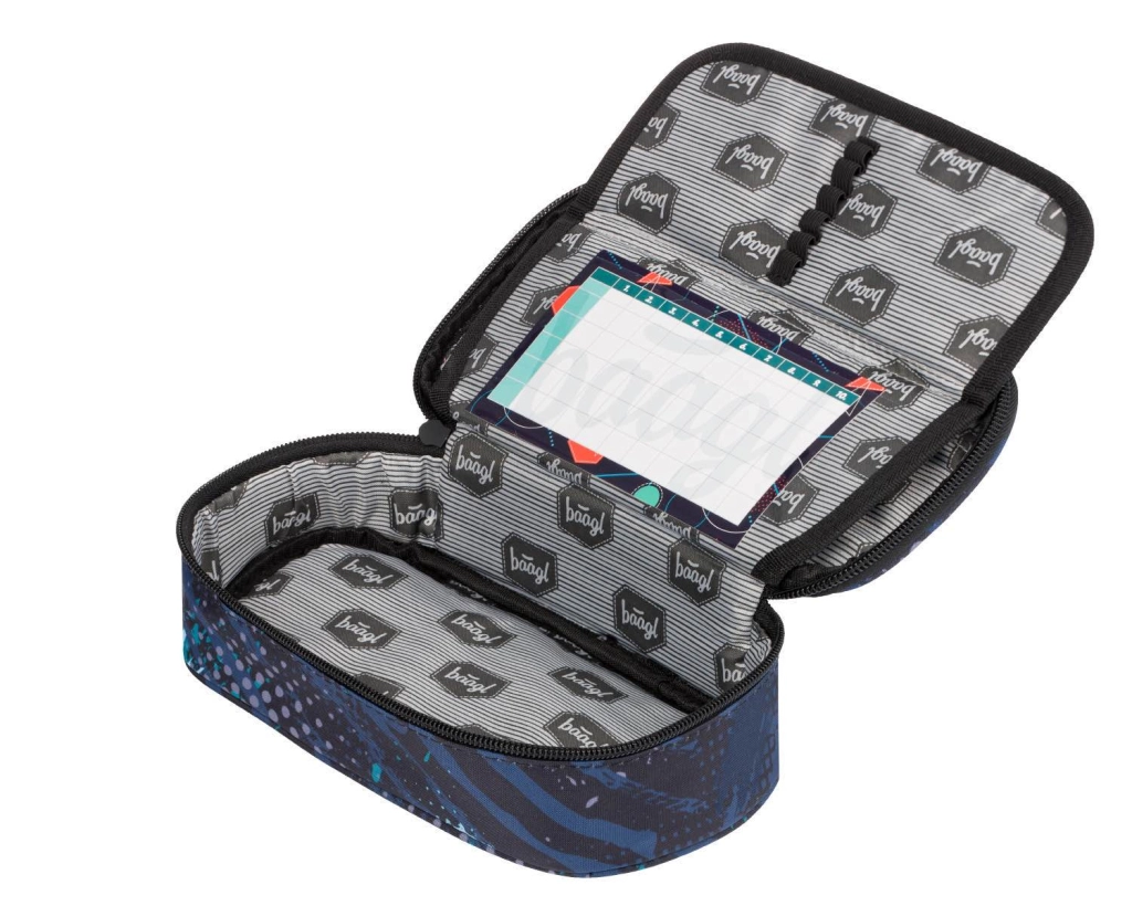 El estuche con separador abatible, bolsillo con cremallera y horario mantiene el material de escritura ordenado. El saco con cierre de cuerdas para llevar a la espalda tiene el logo BAAGL luminoso y es ideal para calzado o educación física.
