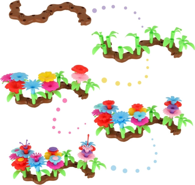 Con el set de construcción creativo, los niños pueden expresar libremente su imaginación y crear hermosos ramos o jardines.