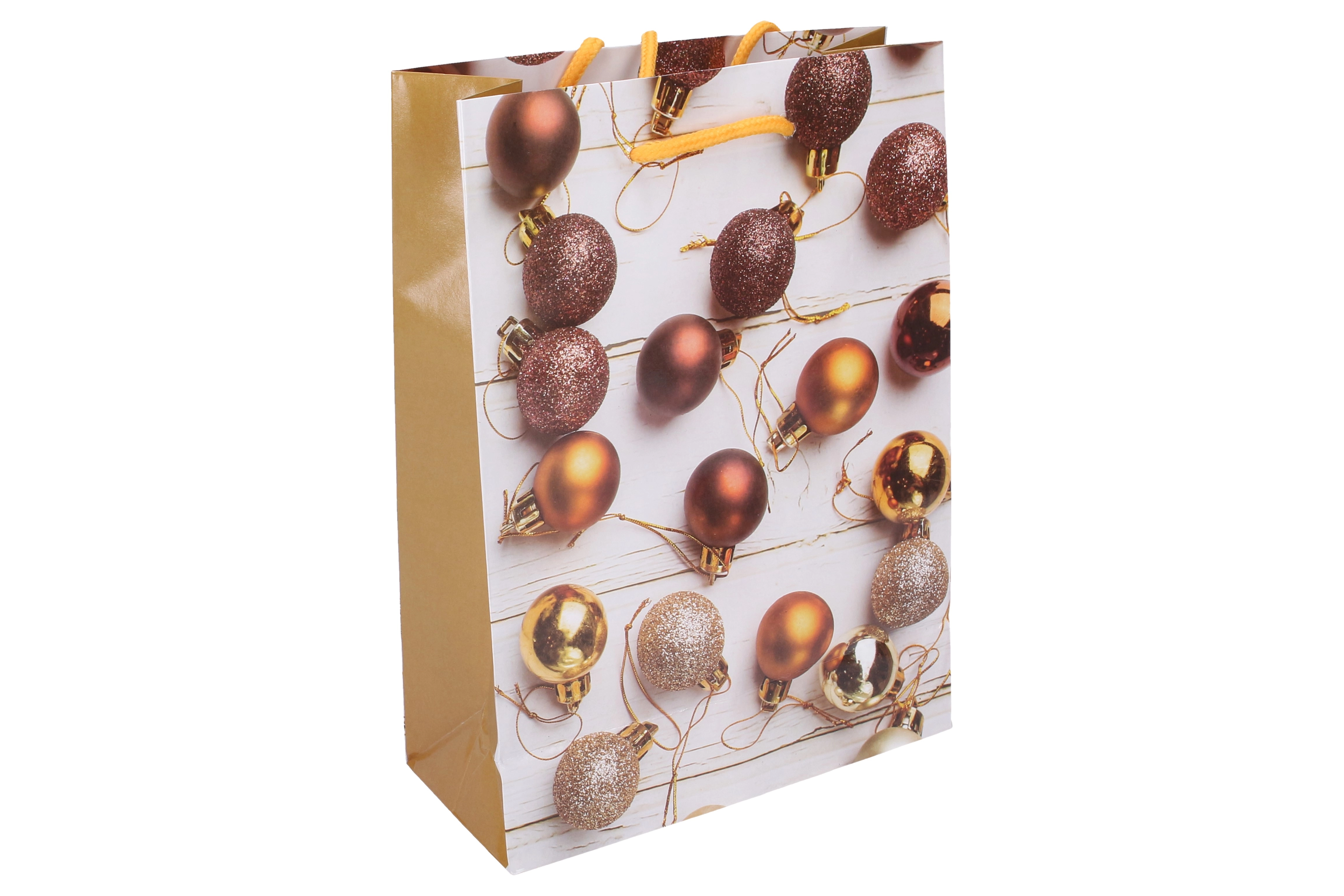La elegante bolsa de regalo navideña en tamaño L 32x44x11 cm es la solución ideal para envolver tus regalos de Navidad. Disponible en cuatro colores diferentes, esta bolsa no solo protege tus regalos, sino que también les aporta un toque de lujo y alegría gracias a su diseño festivo.