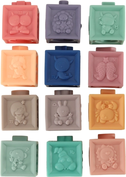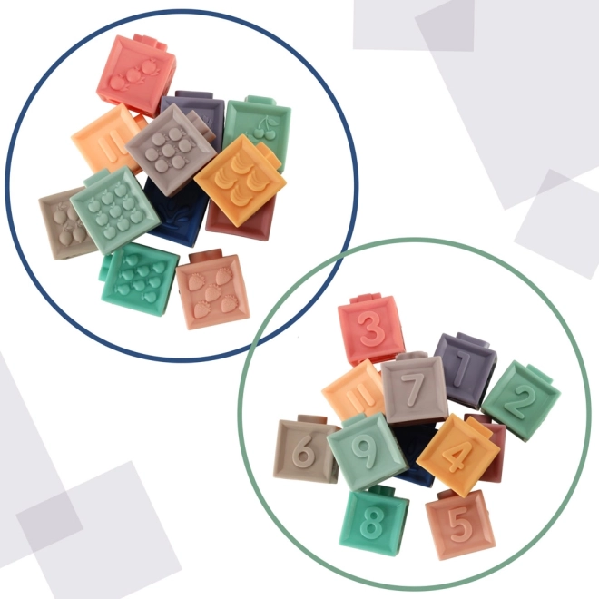 Gracias al material suave y flexible, las piezas son seguras desde los 6 meses y también pueden usarse como mordedor. Jugando, los niños fortalecen de forma natural el agarre y la coordinación mano-ojo y entrenan el pensamiento lógico al apilar y realizar ecuaciones sencillas.