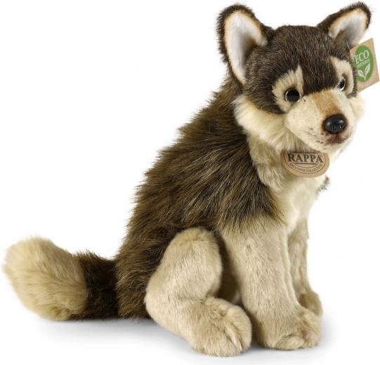 Este lobo de peluche sentado de la marca RAPPA destaca por su apariencia realista y su material extraordinariamente suave, que invita a abrazarlo. Gracias a su relleno ecológico de botellas PET recicladas es respetuoso con el medio ambiente y además totalmente seguro para niños desde el nacimiento.