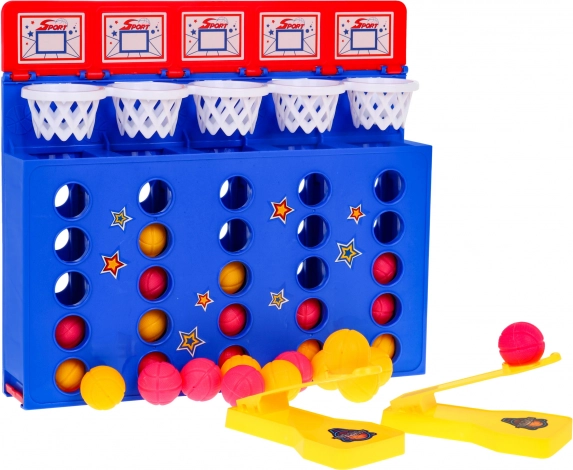 Lanza las pelotas a las canastas y sé el primero en formar 4 en línea. Reglas simples, pero un juego sorprendentemente emocionante y lleno de duelos.