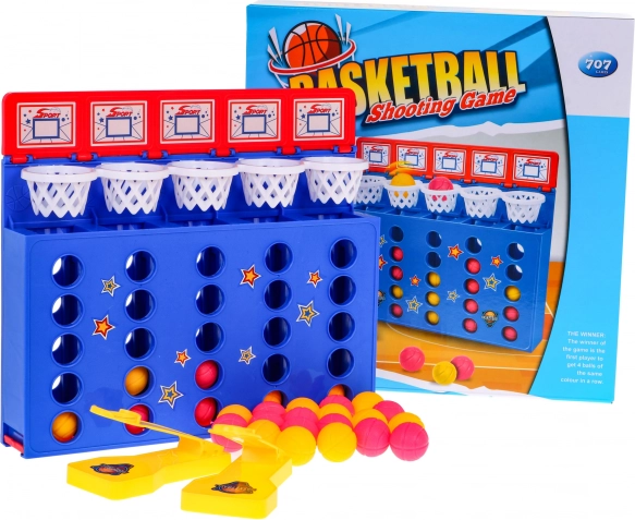 El juego Baloncesto – 4 en línea combina los populares principios de “4 en línea” con la dinámica del lanzamiento de pelotas a las canastas. Con un práctico lanzador, envía las pelotas a las canastas superiores para formar una línea continua de un solo color. ¡Quien forme primero cuatro en línea, gana!