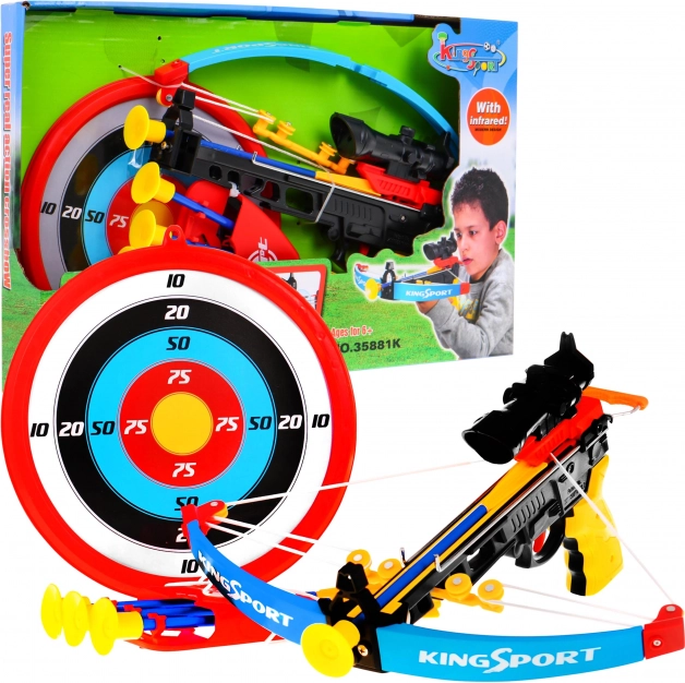 Esta ballesta infantil aporta mucha acción y diversión para niños a partir de 6 años. Gracias a la cuerda elástica el disparo es fluido y seguro, mientras que la mira (IR) láser ayuda a apuntar con mayor precisión a la diana incluida. El diseño colorido y la construcción ligera facilitan su uso y permiten horas de juego.