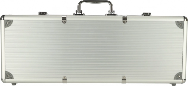 El set también incluye dados, que abren posibilidades para distintos tipos de juegos, y llaves para cerrar con seguridad el maletín de transporte. La elegancia y resistencia del diseño hacen que este maletín sea adecuado para el transporte seguro y el almacenamiento de los componentes del juego.