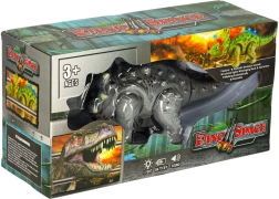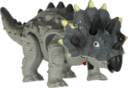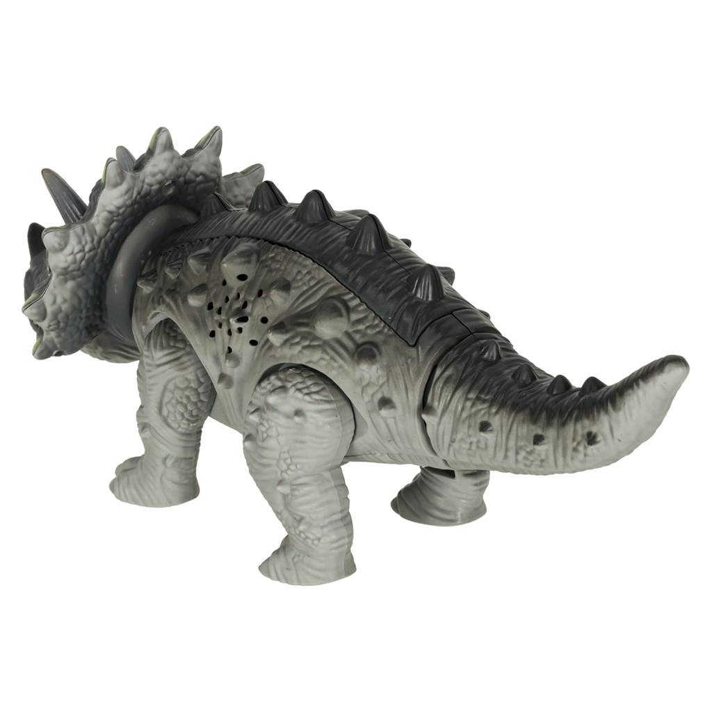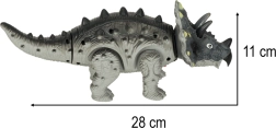 Durante la caminata, el triceratops se mueve, agita la cabeza y la cola, y lo acompaña con rugido de dinosaurio y efectos de luz. Perfecto para jugar tanto en solitario como en compañía. Empaquetado en caja de cartón con ventana: también ideal como regalo.