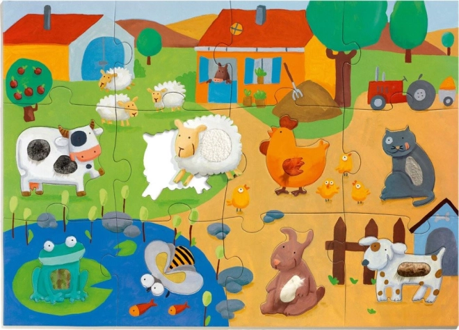 ¿Buscas un juguete con sentido que entretenga y a la vez estimule? El rompecabezas táctil granja de Djeco combina preciosas ilustraciones con distintas texturas superficiales que imitan el pelaje de los animales. Al montar el puzzle, los niños ejercitan la atención, la coordinación ojo–mano y la discriminación de superficies mediante el tacto.