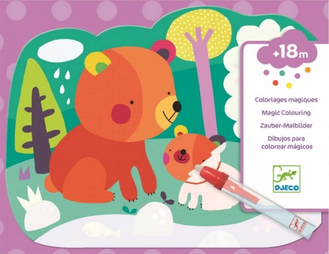 Las láminas para colorear con agua de DJECO ofrecen a los niños desde 18 meses una actividad sencilla y limpia sin pinturas. En cuatro tarjetas rígidas de 21 × 26 cm aparecen tiernos personajes al contacto con el agua: osito, gatita, lechuza y zorra. Cuando el agua se seca, la imagen se oculta y el juego puede comenzar de nuevo.