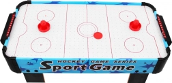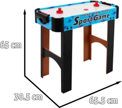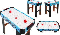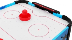 Disfruta de una diversión dinámica con este air hockey de mesa compacto. La superficie de juego con orificios y el flujo de aire crean un colchón sobre el que el disco se desliza suavemente sin fricción. Dos jugadores se enfrentan y, con la ayuda de las palas ("strikers"), intentan marcar en la portería del rival.