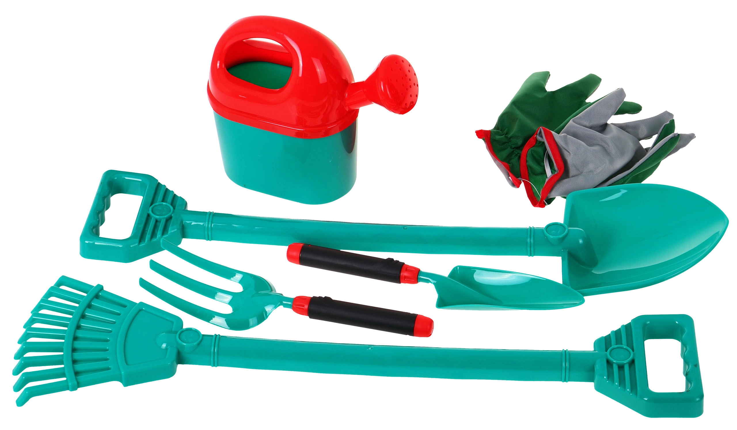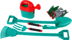 La pala, el rastrillo, la horquilla, la palita y la regadera están adaptadas a las manos de los niños. Aprenderán las bases de la jardinería y desarrollarán la coordinación y la responsabilidad.