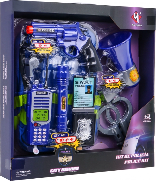 La pistola con sonido de disparo, el megáfono para anuncios fuertes y la radio con luz y sonido entusiasmarán a cualquier pequeño policía.