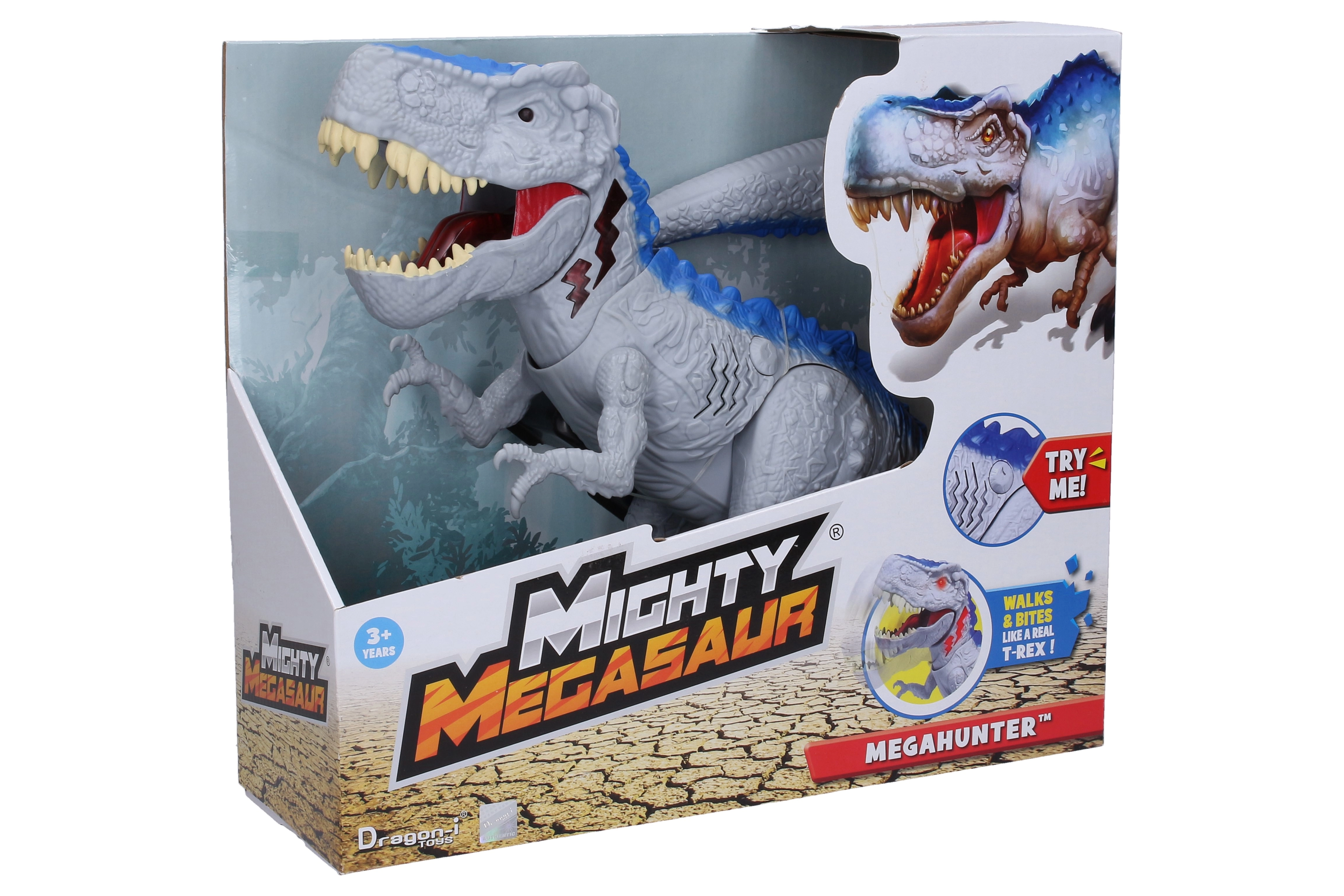 Dinosaurus Mighty Megasaur Megahunter encantará a cada niño con su apariencia realista, mandíbulas impresionantes y movimientos dinámicos. Este juguete está equipado con efectos de luz y sonido que intensifican la atmósfera de la era prehistórica durante el juego. Gracias a sus funciones móviles, el juguete puede girar la cabeza y la cola, lo que da a los niños la impresión de estar tratando con un dinosaurio vivo.