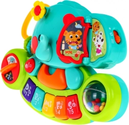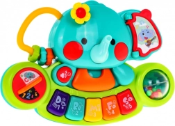 Este elefantito colorido con teclado de plástico de alta calidad entretendrá a los niños durante horas. Combina funciones musicales, efectos de luz y elementos interactivos que estimulan la curiosidad y el desarrollo sensorial. Tocar el mini piano potencia la percepción auditiva, la coordinación mano–ojo y conduce de forma natural al amor por la música.
