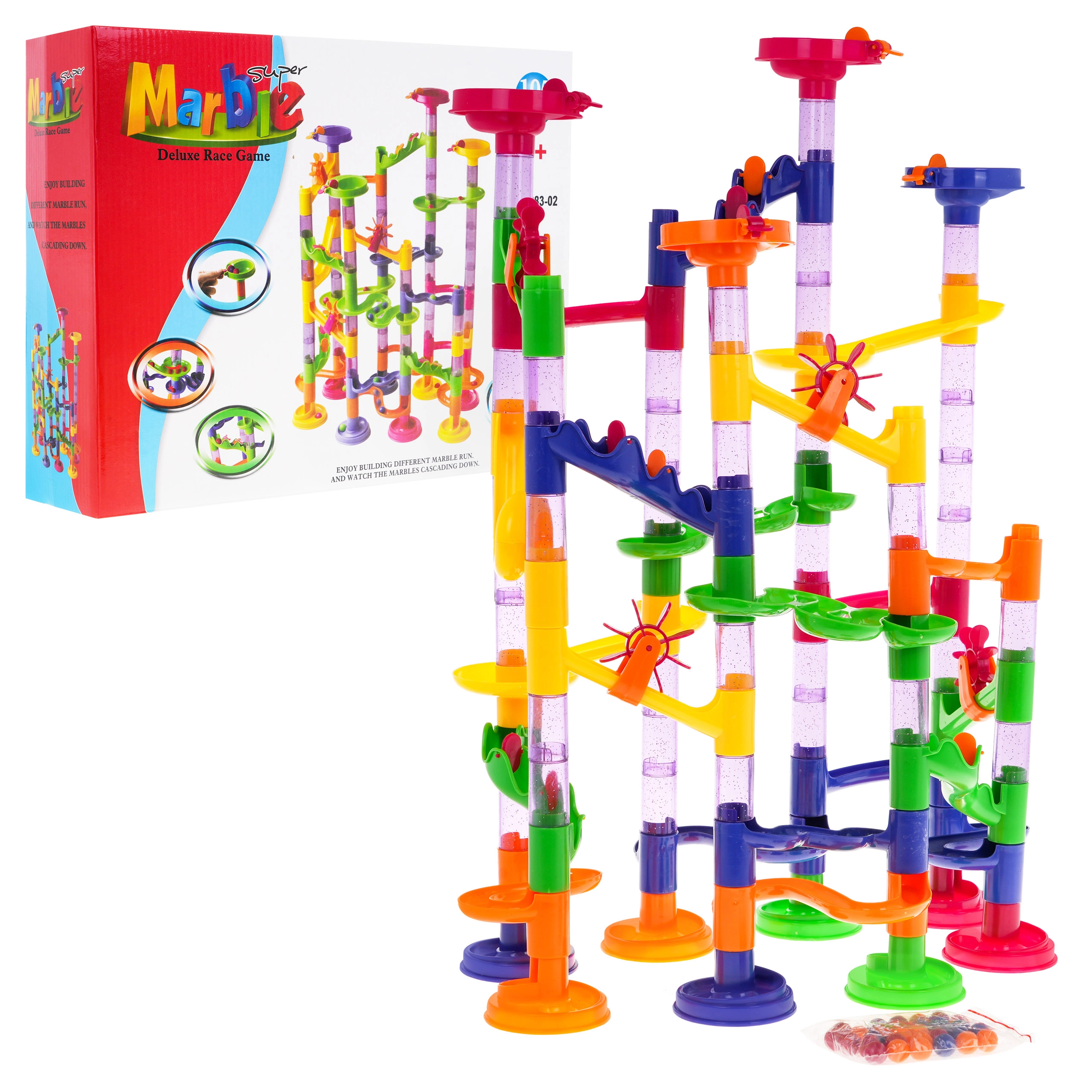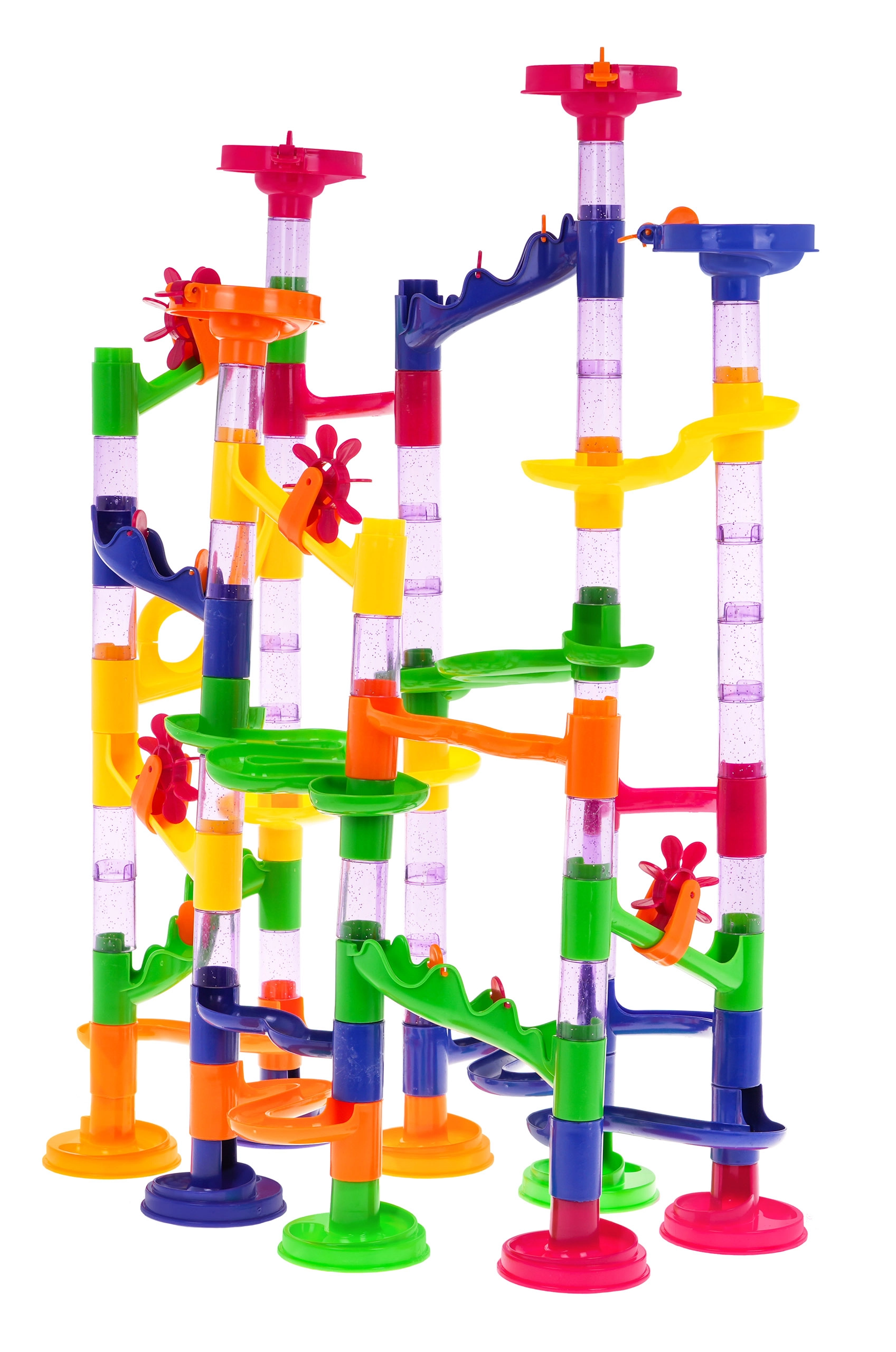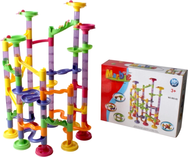 Pista de canicas colorida y resistente para niños a partir de 3 años, que desarrolla la creatividad y las habilidades manuales. Es ideal para construir de forma individual y observar posteriormente el movimiento de las canicas.