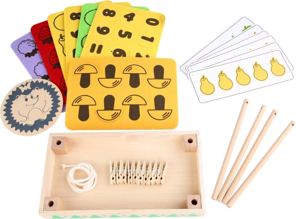 Con este set, los niños pueden trabajar de forma segura y creativa con elementos de madera y textiles. El juguete está concebido para familiarizar a los niños con las operaciones matemáticas básicas y los números, sentando las bases para su futura educación. Cada detalle está cuidadosamente diseñado para fomentar la perseverancia y la concentración.