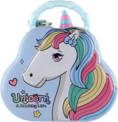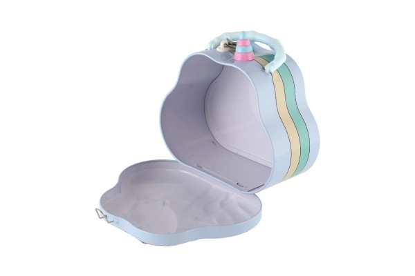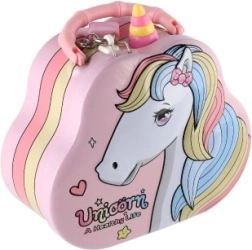 ¿Buscas un regalo tierno y práctico para niños? La hucha de lata – bolso con unicornio es la opción ideal. Los peques guardarán sus primeros ahorros con seguridad gracias a la tapa con cerradura, mientras que la ranura superior para monedas facilita el ahorro diario.