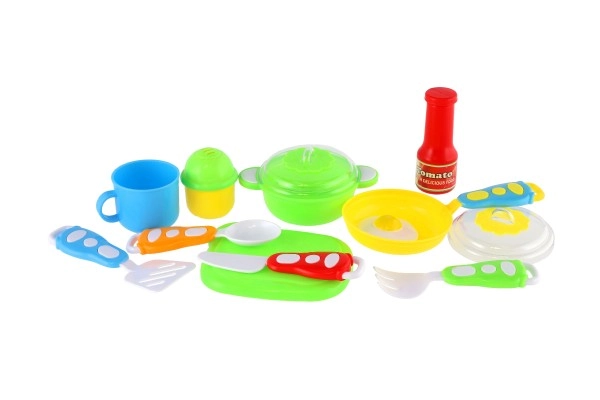 Desarrolla la imaginación infantil con este colorido set de vajilla infantil de 13 piezas, que ofrece todo para un juego de cocina realista. Incluye sartén y olla con tapa, tabla de cortar, cubiertos, tacita, huevo frito, “salsa de tomate” y salero. Ideal para niños a partir de 3 años: juego creativo, seguro y educativo.