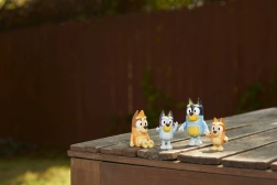 Cuatro personajes favoritos de la serie BLUEY juntos, listos para revivir escenas y crear nuevas historias.