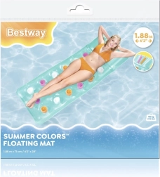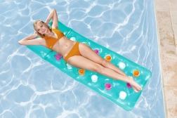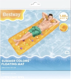 La colchoneta inflable BESTWAY es la compañera ideal para cualquier aventura veraniega. La almohada integrada proporciona un apoyo cómodo para la cabeza, mientras que la pared de vinilo robusta garantiza una flotación fiable y estabilidad en el agua. Su alegre diseño de colores llama la atención a primera vista y añade estilo a tus baños.