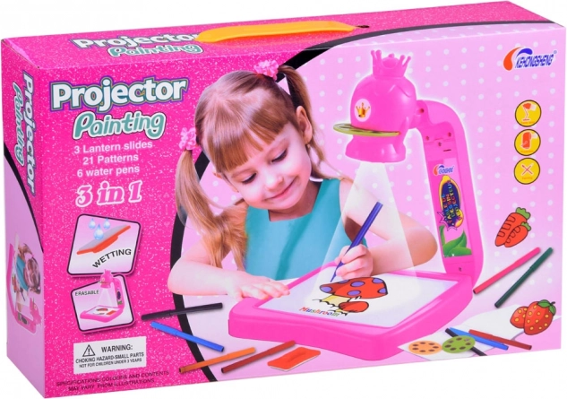 Desarrolla la imaginación infantil con este proyector rosa para dibujar con corona. Gracias a las plantillas proyectadas y al set de rotuladores, los pequeños artistas aprenden fácilmente a calcar y crear. El set incluye 3 discos con diseños, 6 rotuladores de colores, cuaderno para dibujar y una estructura plegable compacta para guardarlo con facilidad.