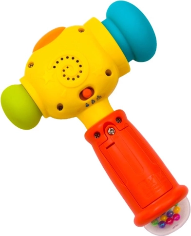 El alegre martillo interactivo atrae a los niños por su diseño colorido, su cara divertida y la combinación de efectos de luz y sonido. Al presionar el botón superior, reproduce 5 melodías entretenidas y, durante el juego, se enciende una luz en la cabeza. Además, cada golpecito activa efectos que fomentan la curiosidad natural y motivan a seguir explorando.