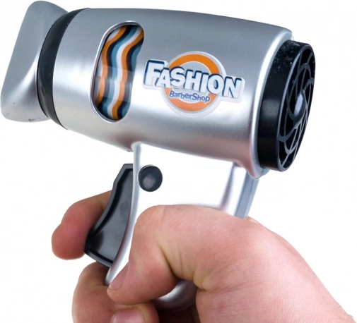 El set incluye un secador que, al presionar el botón, activa un tambor interior giratorio para una experiencia más realista.