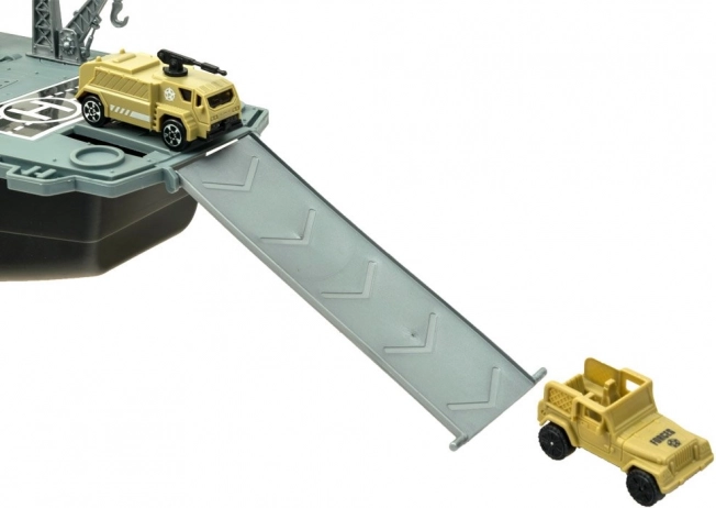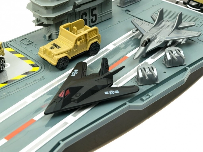El portaaviones, complementado con cazas, un helicóptero, un tanque, otros vehículos y figuras de soldados, garantiza innumerables escenarios de juego y horas de diversión.