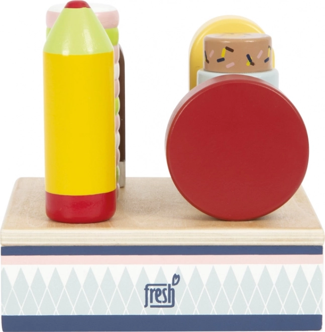 Este set de polos de madera es ideal para jugar a la tienda o a la cafetería. El soporte firme mantiene los seis polos bien visibles y en su sitio, para que las manitas puedan elegir fácilmente su “sabor” favorito y atender a los clientes. Gracias a la madera certificada FSC, el juguete no solo es bonito, sino también respetuoso con la naturaleza.