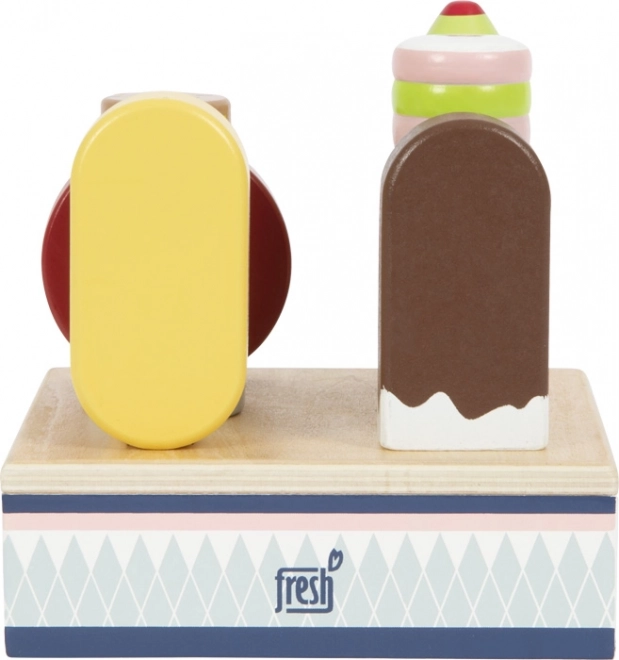 Los colores suaves y las formas realistas estimulan la percepción sensorial, mientras que colocar y sacar los polos entrena la coordinación ojo–mano. El set se combina de maravilla con el mostrador compacto FRESH para crear una estación de helados completa que ofrece horas de juego creativo.