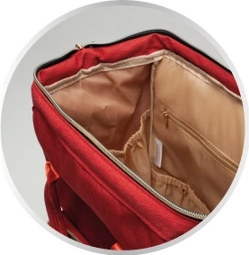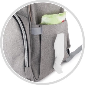 La distribución inteligente con bolsillo impermeable y colchoneta cambiadora lavable mantiene todas las necesidades ordenadas e higiénicamente guardadas.