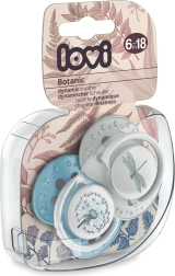 El set de dos chupetes LOVI Botanic para niños de 6–18 meses favorece el desarrollo natural y saludable del paladar, los dientes y las encías. La tetina dinámica de silicona imita el ritmo de succión, su diseño clínicamente probado no contiene BPA y es delicado con la piel sensible. La placa ligera con orificios de ventilación y forma ergonómica permite una respiración nasal libre, una limpieza fácil y una larga vida útil.