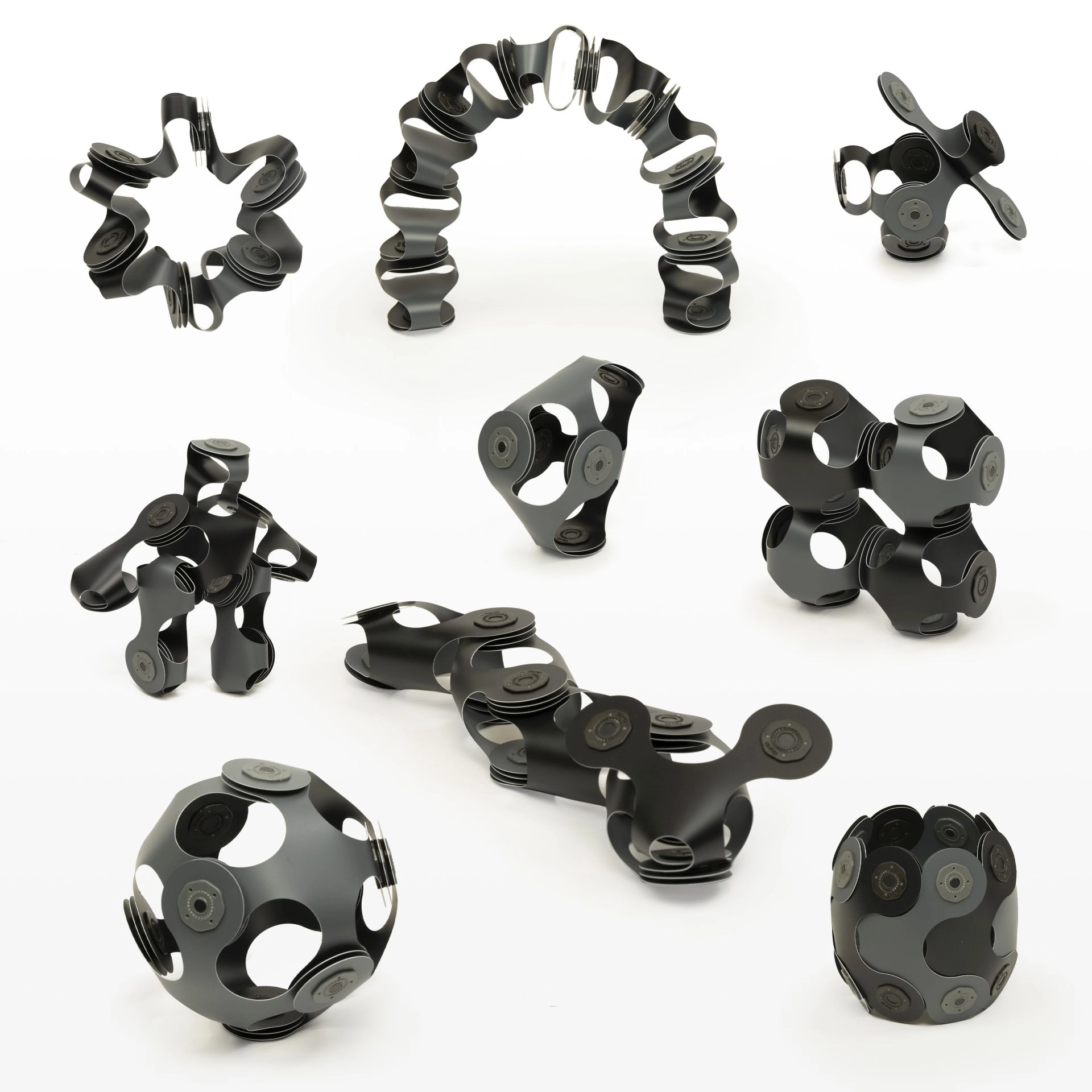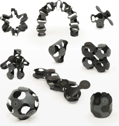 Las piezas flexibles en forma de trébol de cuatro hojas con una bisagra magnética patentada permiten rotación de 360° y fijación en 24 posiciones: el resultado son construcciones sólidas y creativas.