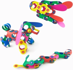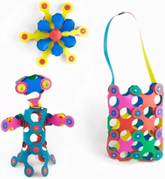 Las piezas flexibles con imanes permiten a los niños crear modelos planos y volumétricos, desde animales hasta figuras fantásticas. El juego desarrolla de forma natural la motricidad fina, la imaginación y la concentración.