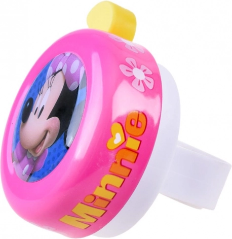 Elegante timbre infantil para bicicleta con motivo de MINNIE MOUSE que garantiza una conducción segura y diversión en cada paseo. Tiene cuerpo de metal para una larga durabilidad, soporte universal de plástico para un montaje fácil en el manillar y un tono alto y claro que avisa de forma fiable al entorno.