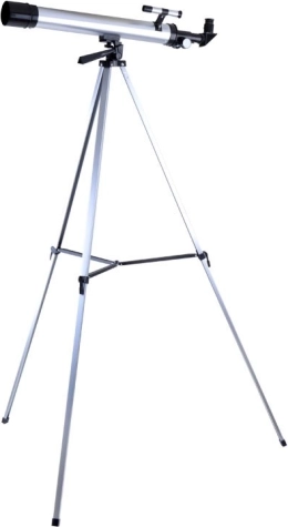 Telescopio ligero pero resistente, fabricado en plástico con trípode de aluminio, que permite una manipulación y mantenimiento sencillos.