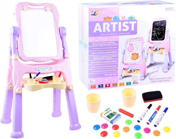 - Pizarra infantil de caballete, magnética y de tiza, de doble cara