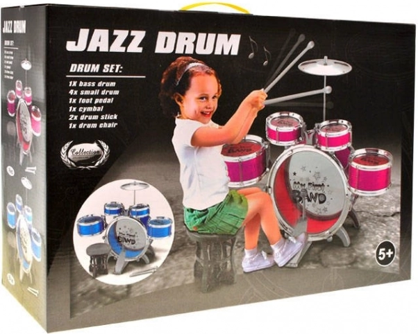 Batería de iniciación para niños con cinco tambores, platillo y pedal, que ofrece horas de diversión musical y desarrollo del ritmo. Incluye un taburete cómodo y baquetas. Un regalo ideal para pequeños músicos que quieren descubrir el mundo de la música y entrenar la coordinación. Apariencia realista, montaje sencillo y diseño resistente de plástico.