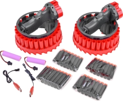 - Set completo para 2 jugadores: 2 blásteres, 56 dardos, 2 baterías de 3,7 V y 2 cables USB.