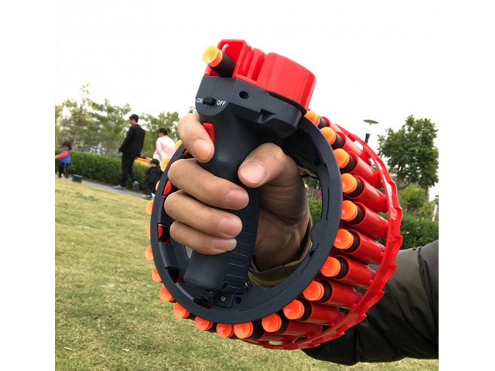- Gran capacidad: 28 dardos de espuma en el cargador circular de cada bláster.