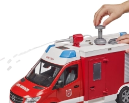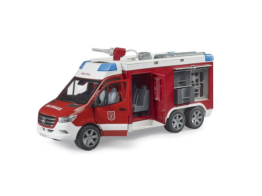 El realista camión de bomberos MERCEDES-BENZ Sprinter de la marca Bruder encantará a cada pequeño rescatista. Ofrece un cañón de agua funcional con depósito y bomba, módulo de luz y sonido, puertas y compartimentos de almacenamiento abatibles y bandas de rodadura de neumáticos blandas para un juego excelente. La fabricación de calidad en plástico ABS resistente y la compatibilidad con accesorios BWORLD garantizan una larga durabilidad y diversión.