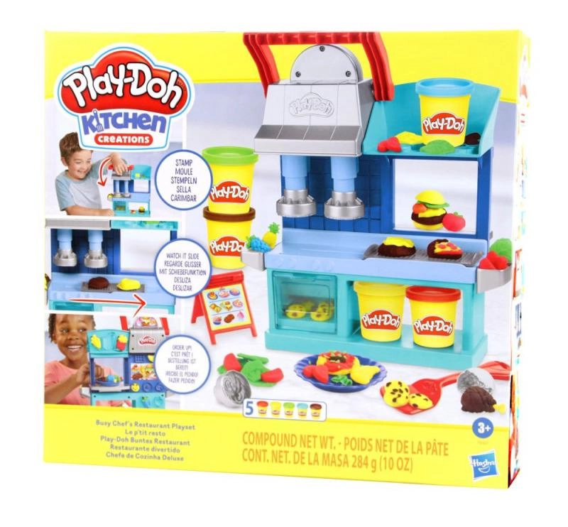 Deja que tus hijos descubran el mundo de la cocina con el set de juego Play-Doh Creaciones de Cocina. Este set interactivo ofrece muchas posibilidades: pueden crear pizza, hamburguesas, pasta o pollo con divertidos moldes; solo hay que accionar la palanca y los platos estarán listos.