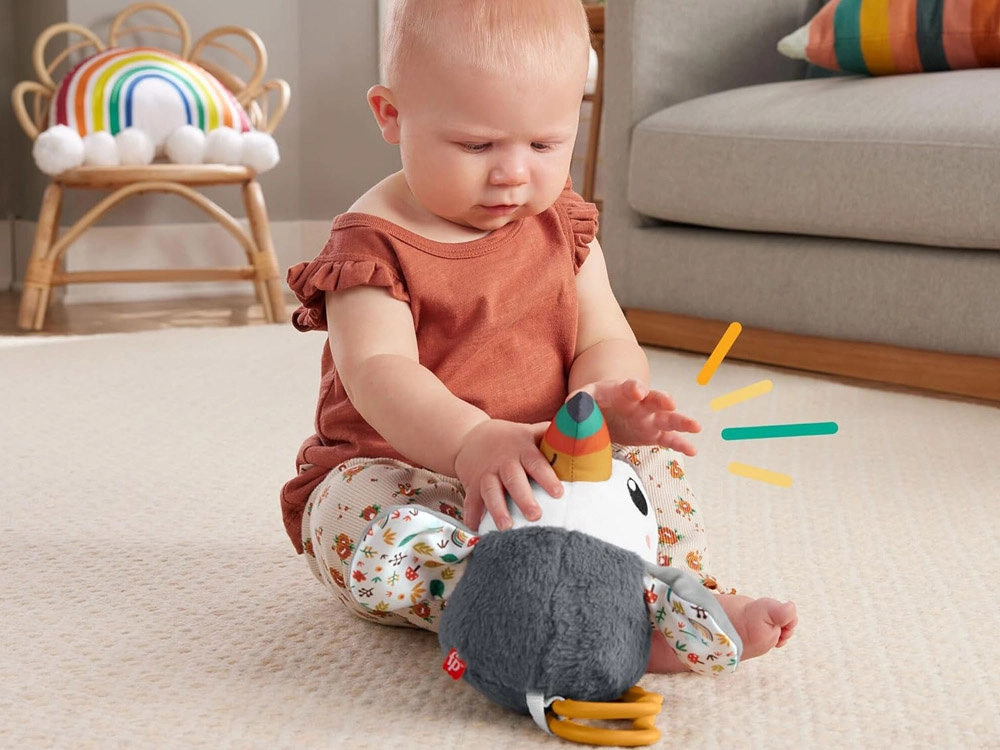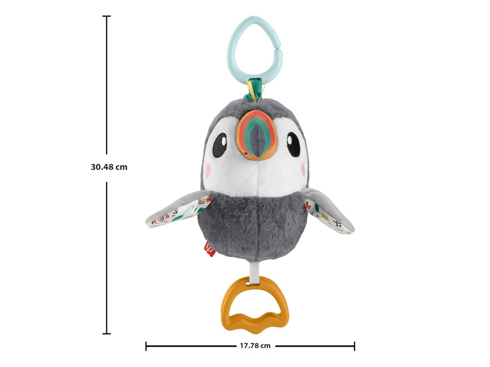 El adorable tucán de Fisher‑Price es un suave juguete colgante para cochecito, silla de auto y cuna. Ofrece un suave sonajero, alitas crujientes, pico de colores y aros mordedores para aliviar durante la dentición. Gracias al clip universal, siempre está a mano y favorece el desarrollo sensorial y la motricidad fina del bebé desde el nacimiento.