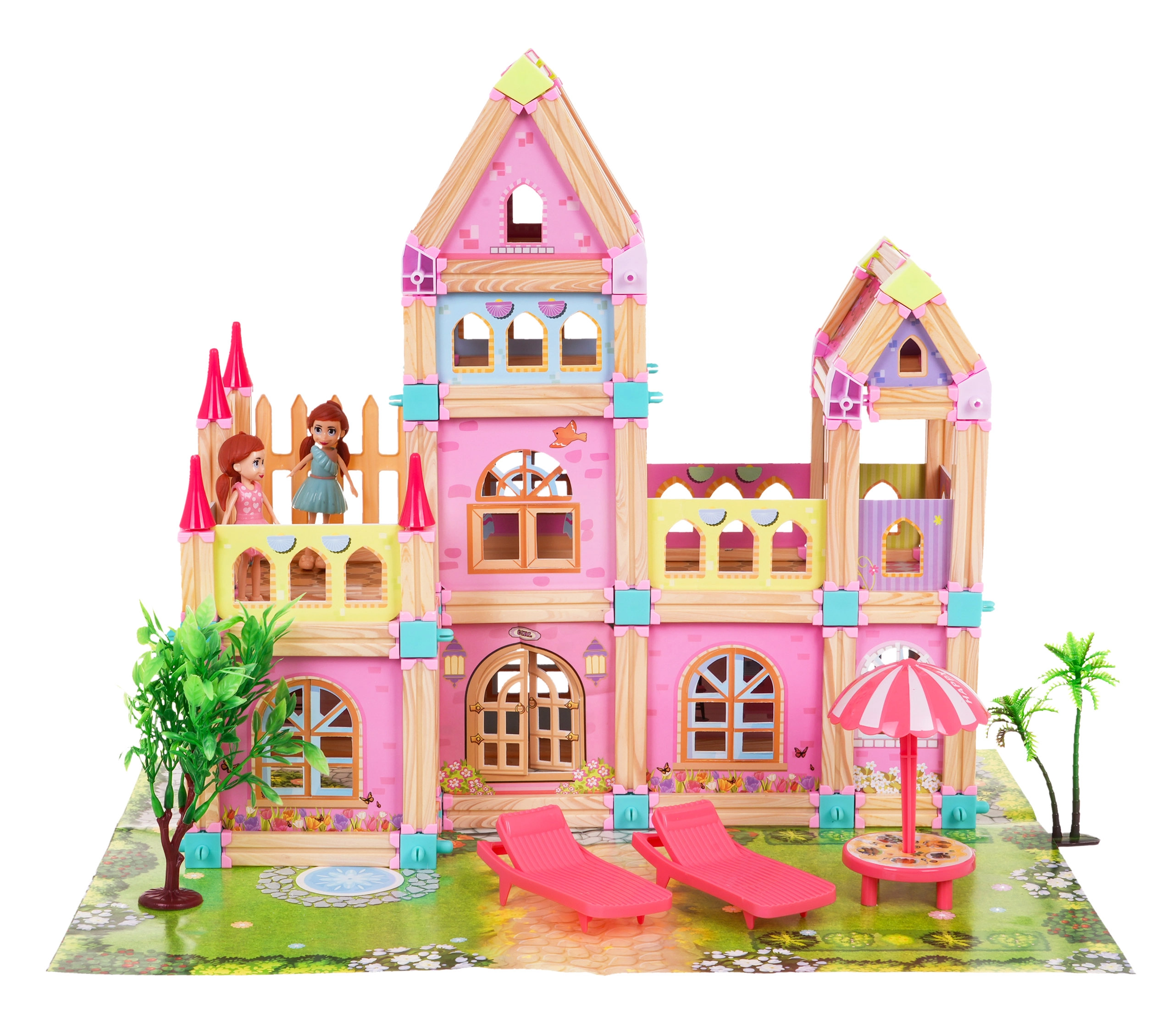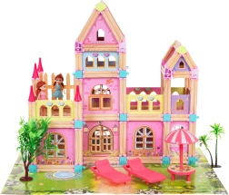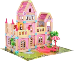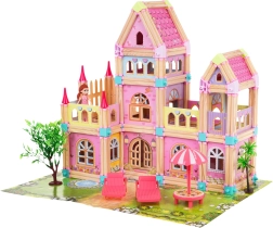 La casa de madera para princesas para niños ofrece la posibilidad de construir una hermosa casa con elementos creativos para los más pequeños. El set incluye 183 piezas de construcción, incluidas dos figuras de princesas, gracias a las cuales los niños pueden desarrollar sus habilidades narrativas. La casa tiene varios pisos y balcones, lo que permite diversos escenarios de juego.