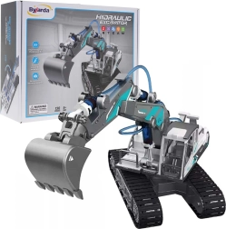 La excavadora hidráulica para ensamblar es un set educativo que muestra de forma comprensible a los niños cómo la presión hidráulica del agua transforma la fuerza en movimiento. Una vez montada, no requiere baterías: las palancas de mando y el agua ponen en movimiento el brazo, el plumín y la cuchara como en una máquina de construcción real.
