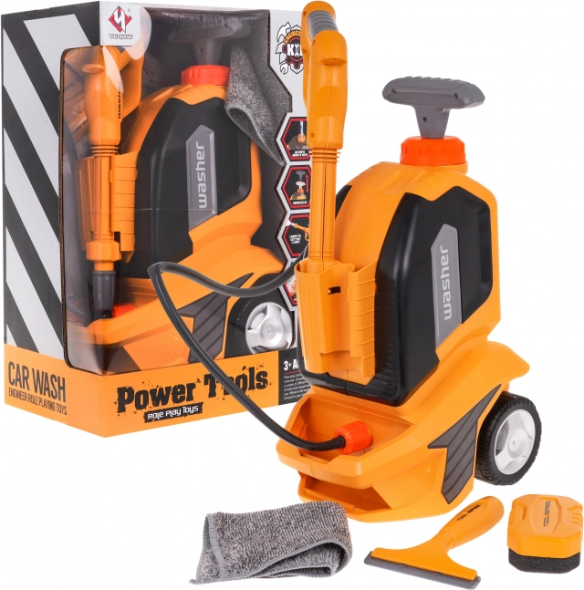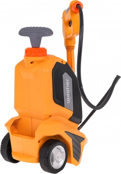 La lavadora infantil con función de agua está diseñada para entretener a los niños y, al mismo tiempo, enseñarles el mantenimiento de vehículos. Solo hay que llenar con agua el depósito en la parte superior del juguete y mover la empuñadura hacia arriba y hacia abajo para que comience a salir el agua. El juguete se entrega con: