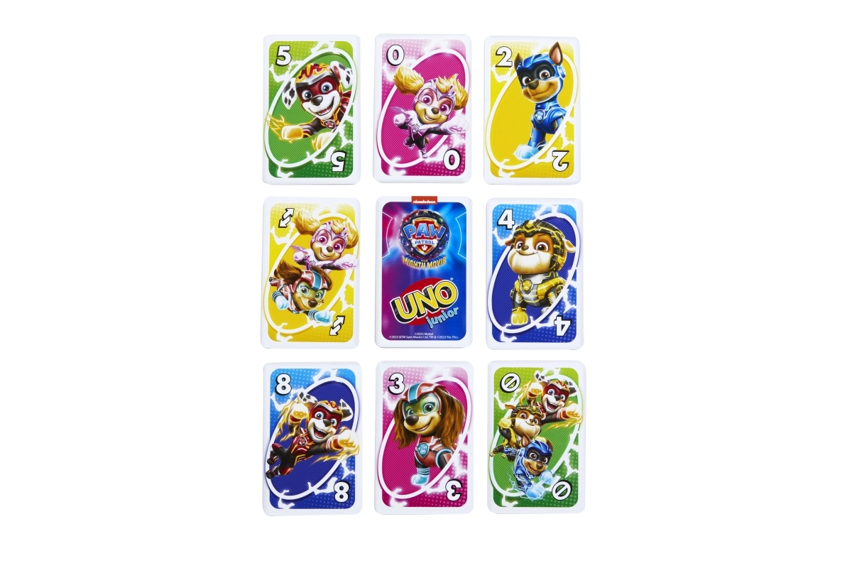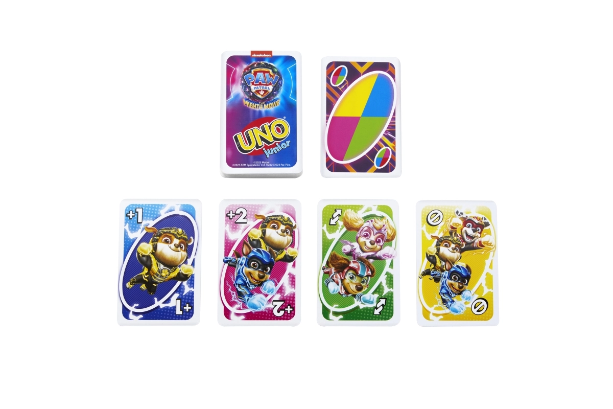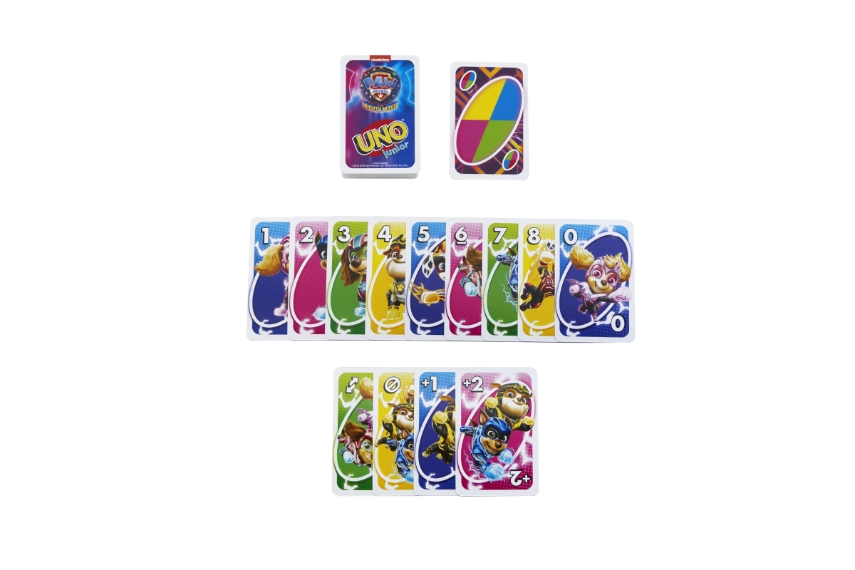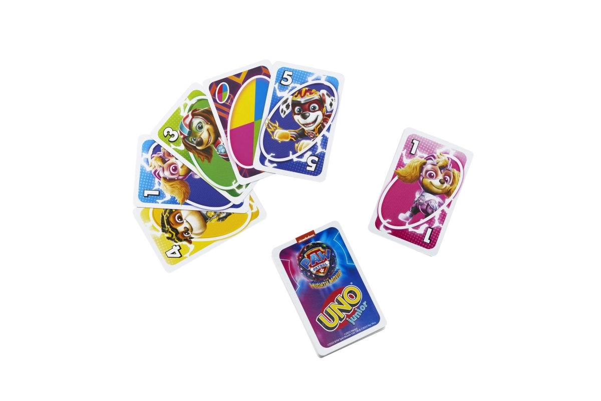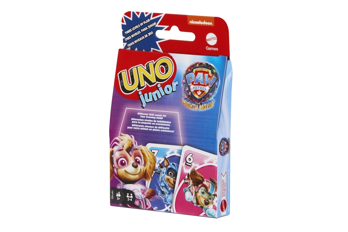 El popular juego familiar UNO llega en versión infantil con motivos de la película de la Patrulla Canina. Las cartas de colores con números grandes y personajes facilitan el reconocimiento y fomentan el aprendizaje de colores, números y principios básicos del juego.