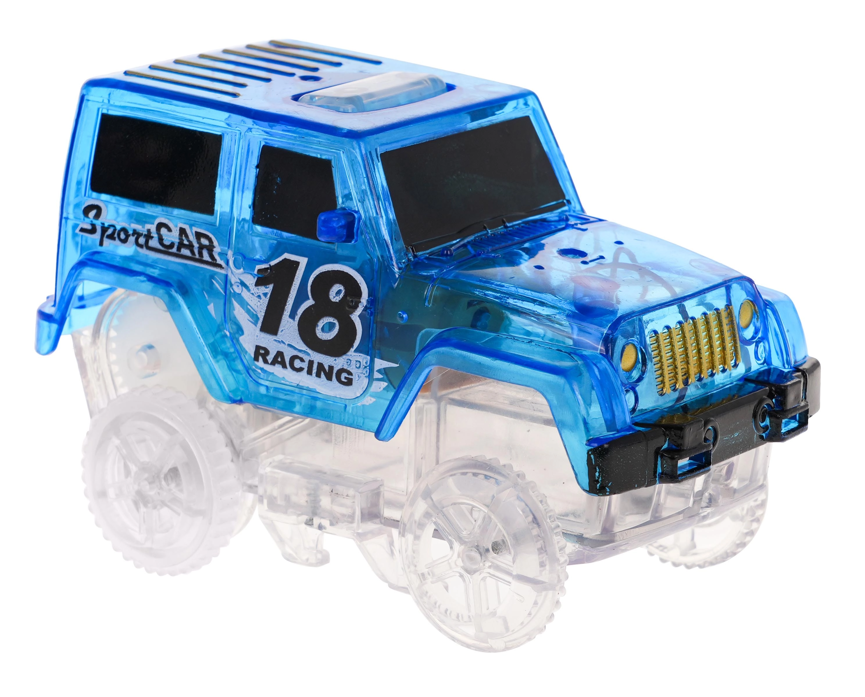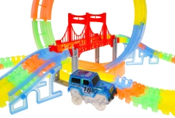 Las piezas fluorescentes de la pista y el coche con LED crean efectos de luz llamativos que entusiasmarán a los niños durante el juego nocturno.
