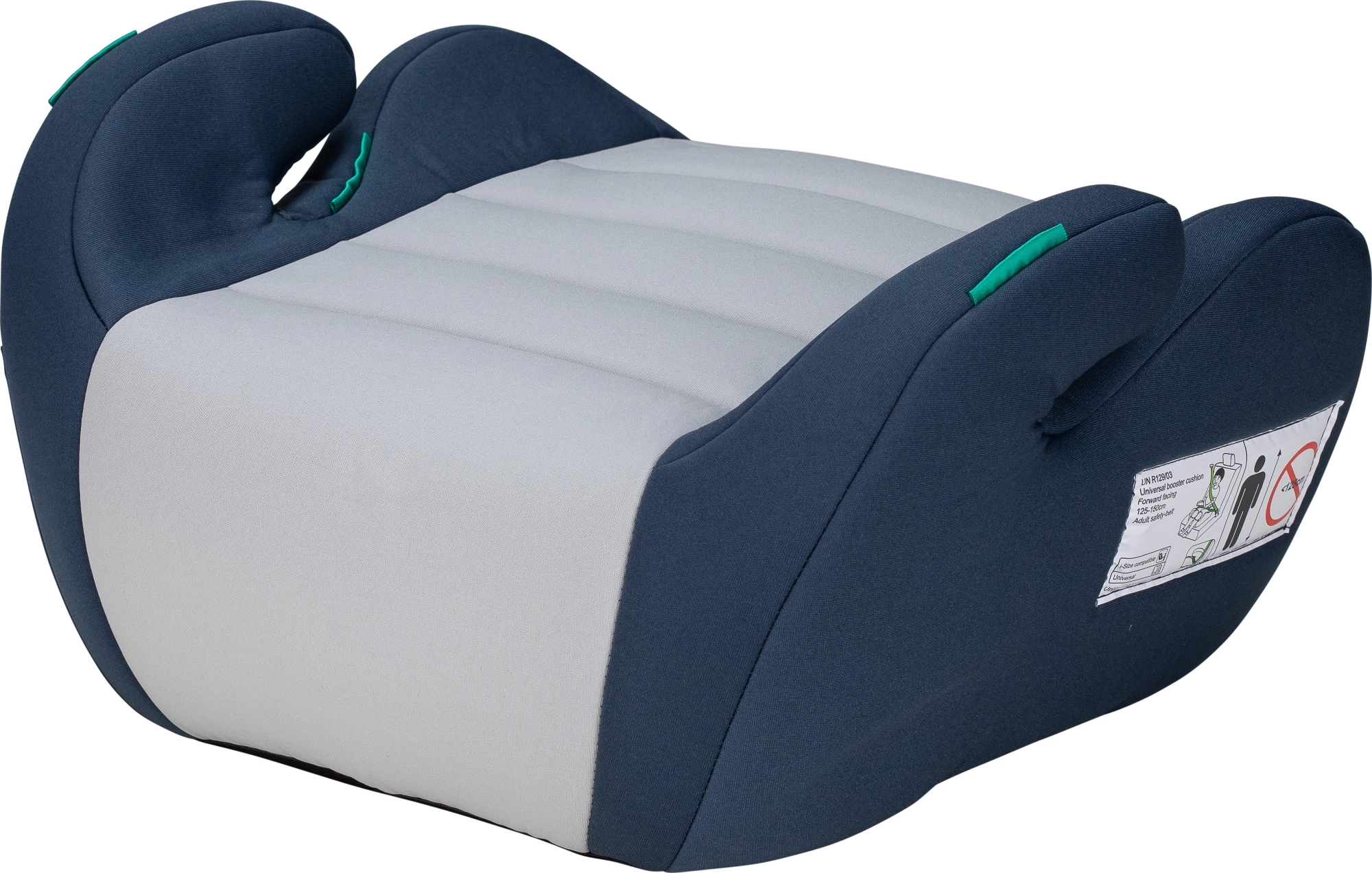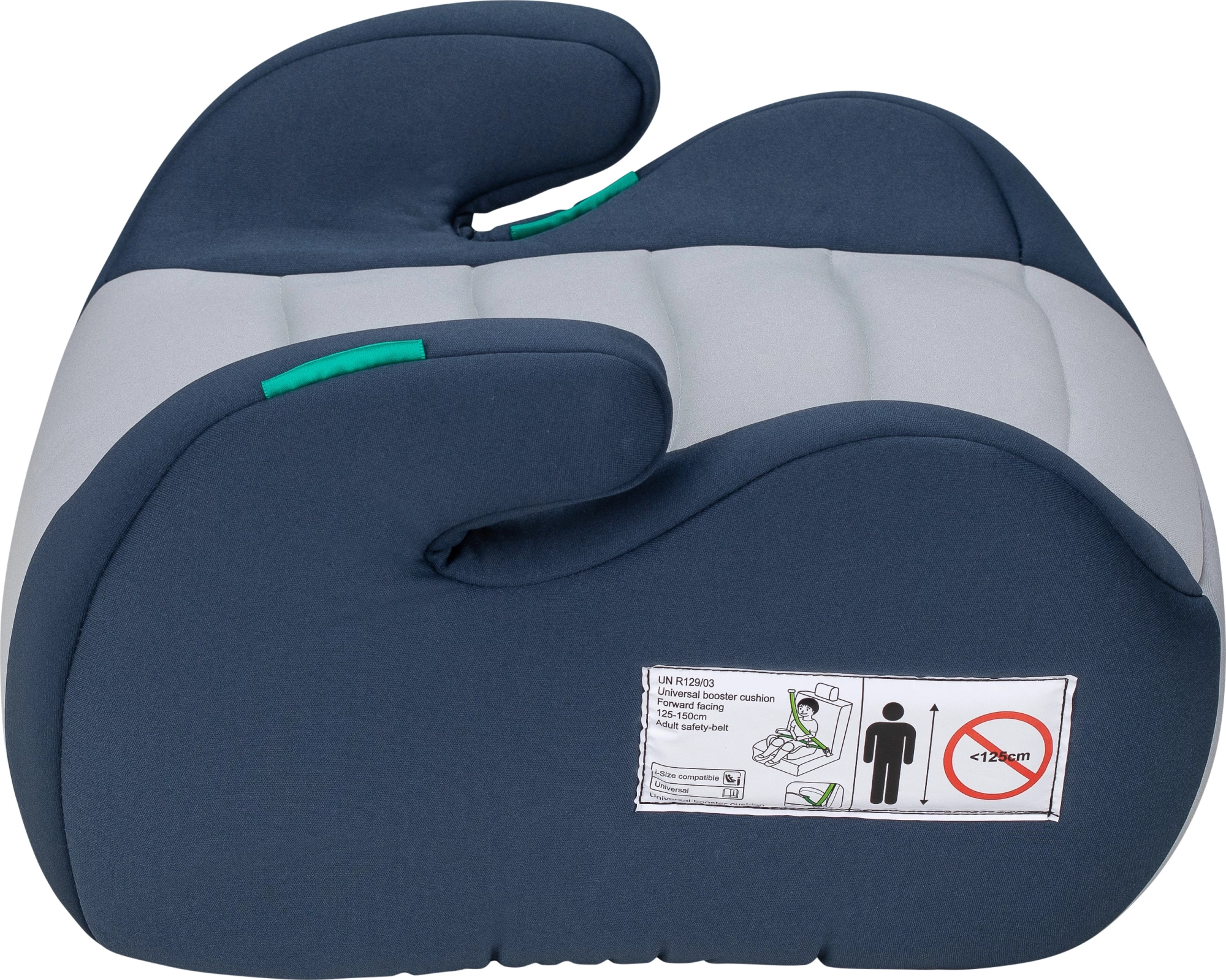 El alzador cumple la normativa europea actual ECE R129 i-Size para un guiado seguro y correcto del cinturón en niños de 125–150 cm.